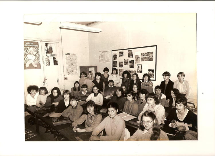 Naviguez en cliquant sur la photo. 1980 - Classe de 2sde A2 - Lycée camille jullian sans grande conviction pour la date.... C'est la prof de russe qui avait invité les latinistes à rejoindre ses élèves pour prendre la photo.... La chevelue avec blouson et écharpe autour du cou, c'est moi! Sur la photo Anne-France LÉON (LEON) Cecile VIGNERAS Sophie CHASSOT Stéphanie LE MERCIER (CHATAIN) Véronique PLANQUES Signaler un abus