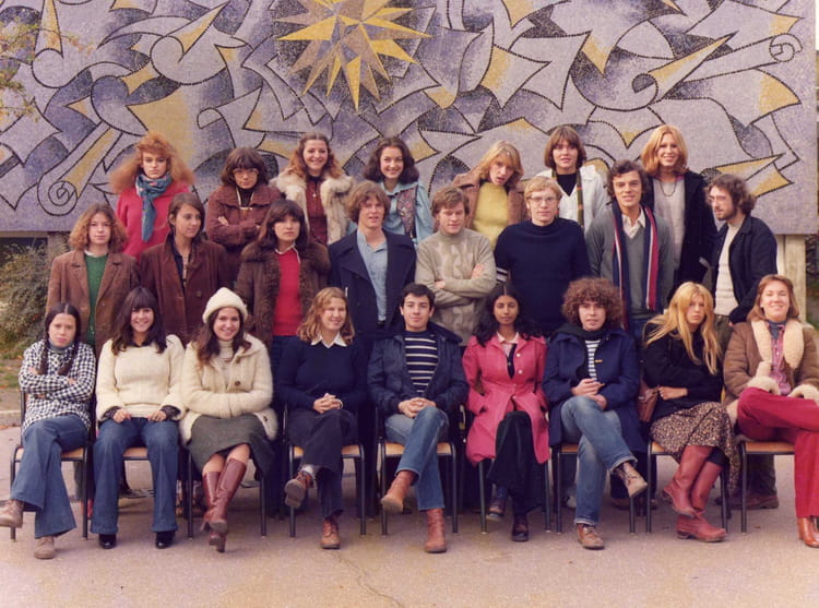 Naviguez en cliquant sur la photo. 1977 - CLASSE TA2 - Lycée gabriel fauré Sur la photo Brigitte MARTIN Isabelle MICALEFF Michele MAILLIARD Monique GINESTE (MARTEAU) Olivier CAMBON Signaler un abus