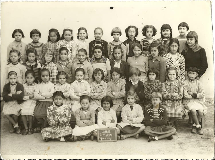Je reconnais,de bas en haut : 4ème rang et de gauche à droite : 4ème , Louisa Rahmani-/-3ème rang :1ère Chantal Waltensperger - 5ème Chantal Donadieu -/- 2ère rang : 4ème ,peut-être ma soeur Nicole Gonet(je n'en suis pas sûre,la photo me semble floue.Je vérifierai, j'ai toutes les photos d'école,de ma soeur et de moi-même)-/-