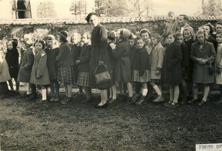 Naviguez en cliquant sur la photo. 1955 - CM2 - Ecole inauguration du lavoir, de la cantine, et de la Poste. En présence de l'Inspecteur Michaud, de Félix Gaillard, Président du Conseil de l'époque, du Sous Préfet, ect... Sur la photo Aucune personne identifiée. Signaler un abus