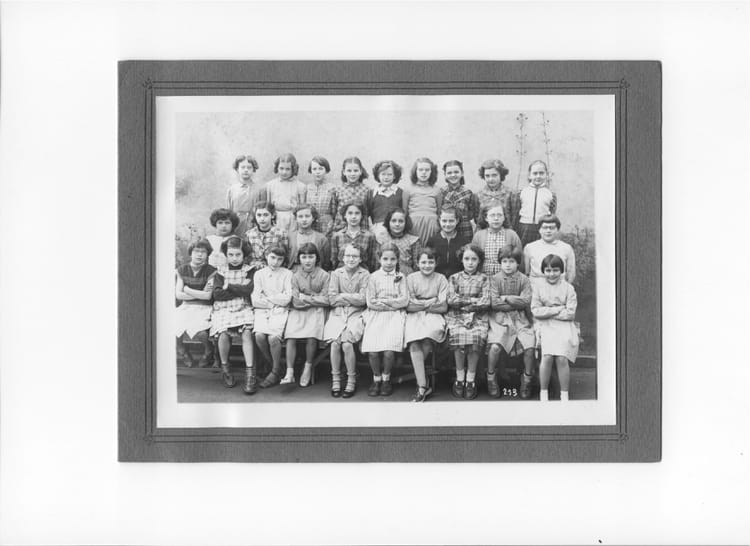Naviguez en cliquant sur la photo. 1956 - CM2 - Ecole braconnot CM2 - Classe de Melle Poisson Sur la photo Danielle MARCHAND Josette HOERTNER (COLIN) Signaler un abus