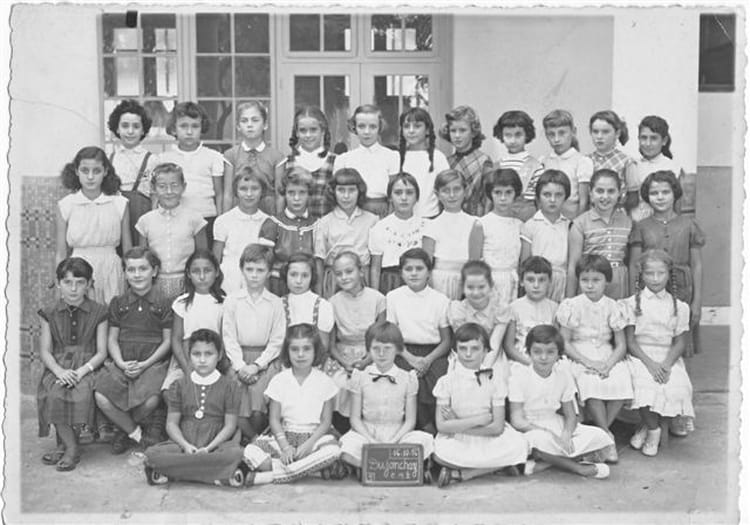 enseignante? mme Gallet. que de souvenirs avec elle! de nombreuses têtes reconnues, en tout cas plus que sur de précedentes photos : boukhabza (michèle ou elizabeth, prénoms des deux soeurs?), jacqueline saurat, lalane, dominique aux grandes jambes...salut amical à celles qui s'identifieront.