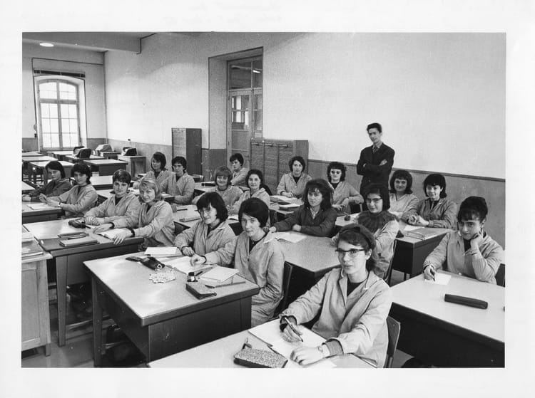 Naviguez en cliquant sur la photo. 1963 - Comptabilité - Bévaux Je suis à droite du Professeur Sur la photo Liliane COLLIGNON (VIARDOT) Signaler un abus