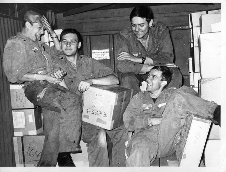 Naviguez en cliquant sur la photo. 1968 - CONTAINERISATION - Dtima EMPOTAGE DE CONTAINER: De G.à D: G.BEURLION-G.W-D.LASNON-JL.CORBELET Sur la photo Gerard WINGERTSMANN Signaler un abus