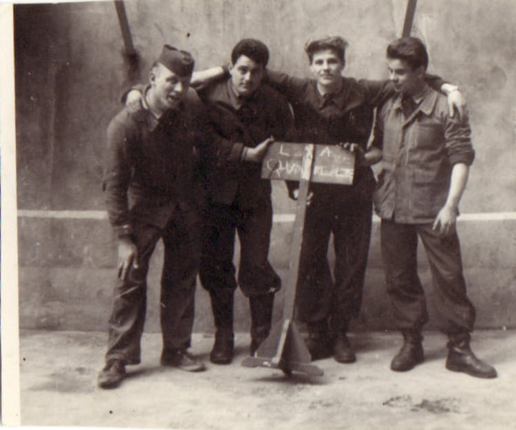 Naviguez en cliquant sur la photo. 1958 - Copain d'instruction - Cs chaligny De gauche à droite, JC GREMION, C OPDENHOVE, moi, M GERARD Sur la photo Aucune personne identifiée. Signaler un abus