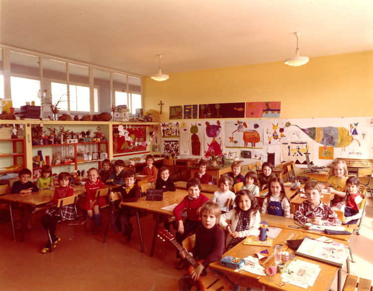 Naviguez en cliquant sur la photo. 1974 - CP - Ecole louis pasteur Je suis en chemise jaune à gauche de l'ardoise sur la table. Sur la photo Catarina KLUMPP (DOS SANTOS) Laurent MUTZIG Signaler un abus