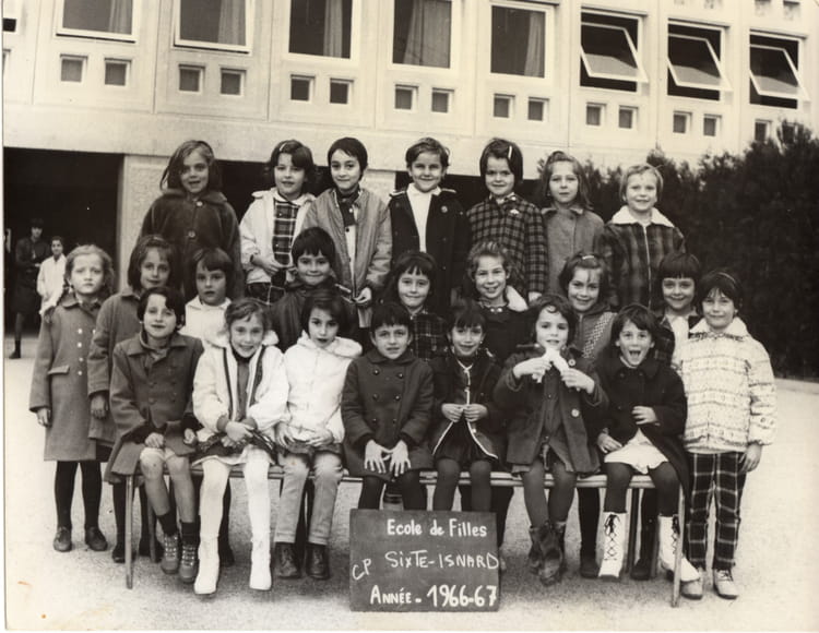 Naviguez en cliquant sur la photo. 1966 - CP - Ecole sixte isnard CP Sixte-Isnard 1966 - 1967 Sur la photo Nicole DEMOULIN Pascale ROULET Stella STELLA SONZOGNI (HUGUENOTTE ) Signaler un abus
