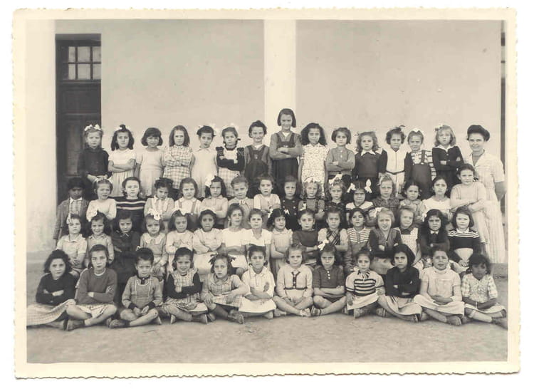 Naviguez en cliquant sur la photo. 1949 - CP - Maurial 1ére année d'école à l'Avenue Maurial. Sur la photo Jeannineelisabeth LEFEVRE (D'HERVEZ) Marcelle BERNARD (LAUTIER) Odile GODARD (CAMPS) Signaler un abus