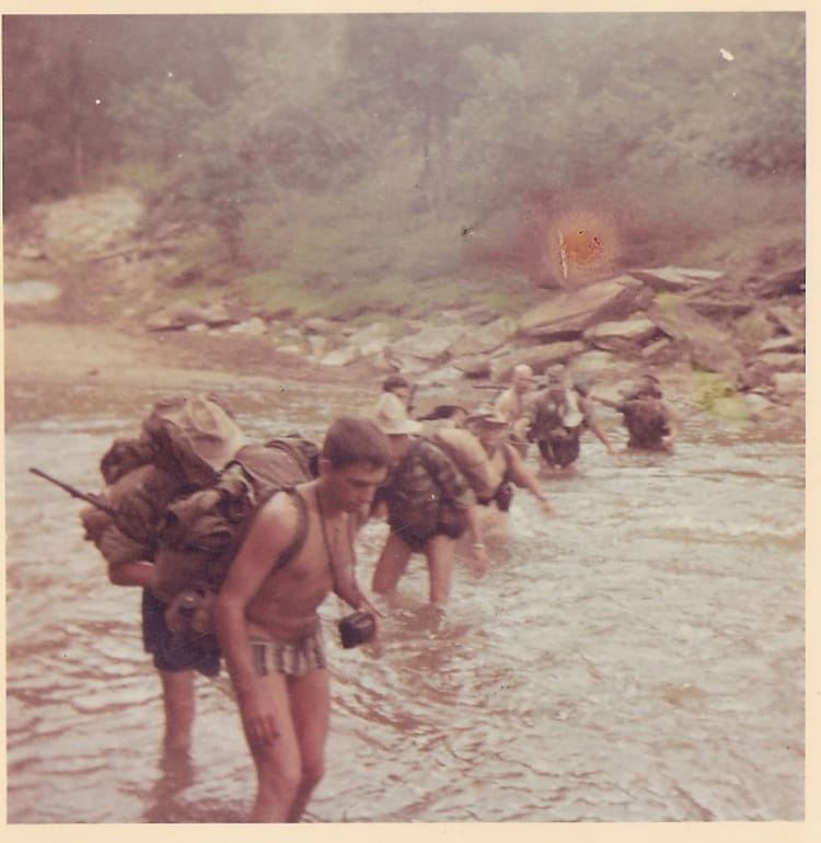 Naviguez en cliquant sur la photo. 1971 - Crapahut - Bimap crapahutage en brousse, je suis devant en maillot ,et l'appareil photo autour du cou Sur la photo Gérard GUERRERO Signaler un abus