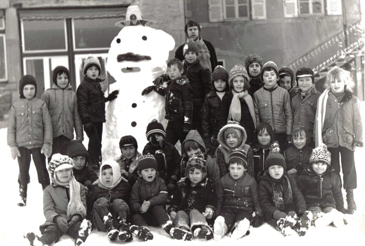 Naviguez en cliquant sur la photo. 1976 - Divers - Ecole (theize) photo dans la cour avec le bonhomme de neige pendant la recrée Sur la photo Aucune personne identifiée. Signaler un abus