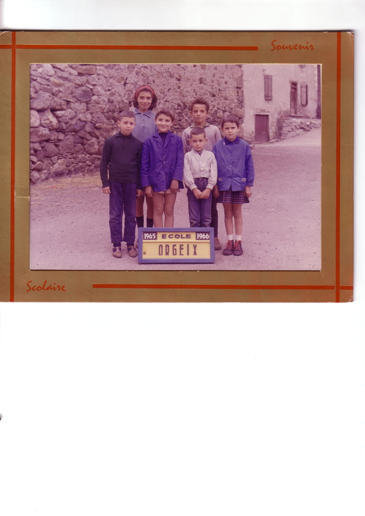 Naviguez en cliquant sur la photo. 1965 - Ecole Orgeix - Ecole Tous les élèves de l'école :Jeanine Perry et son frère Jean-pierre derrière,Jean-marie Sicre ,Raymond je crois (j'ai oublié son nom) ,Jean-yves ,le petit frère de Jean-marie , et moi Sur la photo Bernadette NOYES Signaler un abus