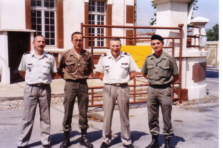 Naviguez en cliquant sur la photo. 1998 - FIN - Cm38 Quelques minutes avant la fermeture définitive du CM 38... avec le LT.CL.LABBE, l'ADJ CAROUET et l'ADC MAUZEZE (du génie) Sur la photo Michel MONIER Signaler un abus