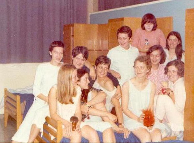 Christine Levesque 1er rang à gauche, Michèle (?) Vimbert (derrière toi Michèle, à ta gauche). Impossible de mettre un nom sur la demoiselle du 1er rang à gauche...C'est vous toutes qui héliez les passants depuis les fenêtres de l'internat ?? :))) Zàs ! plus de 40 ans...