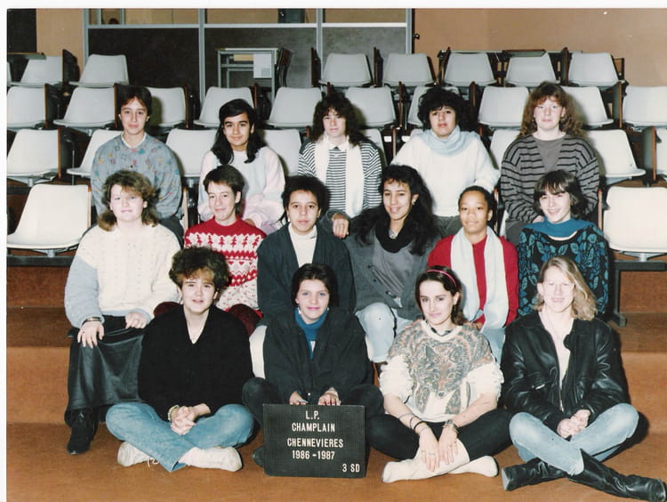 Naviguez en cliquant sur la photo. 1986 - L.P CHAMPLAIN - Lycée professionnel champlain L.P CHAMPLAIN Chennevières sur Marne (3éme SD année 1986-1987) Sur la photo Muriel RENOUX (BOISSEAU) Isabelle BARBOSA (DE SOUSA) Signaler un abus