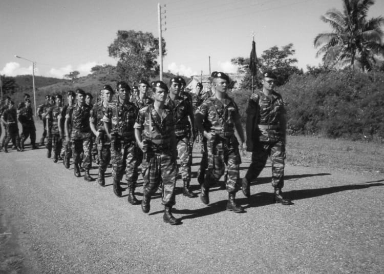 Roger LEONARD 2iem dans la colonne de gauche Tahitien passé sergent 1978 2iem compagnie 3iem section combat avec moi