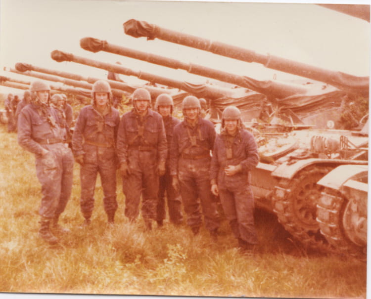 Naviguez en cliquant sur la photo. 1981 - Les AMX13 en manoeuvre - 8 eme ri Pose des équipages de chars Sur la photo Aucune personne identifiée. Signaler un abus