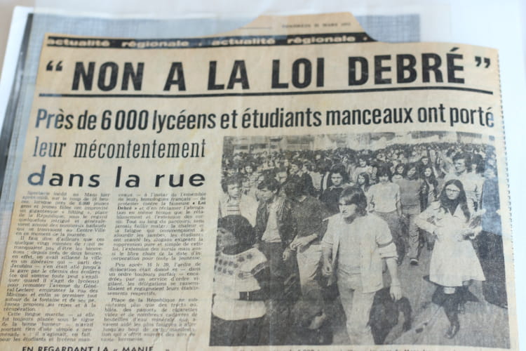 Naviguez en cliquant sur la photo. 1973 - Manif - Lycée gabriel touchard manif contre la loi Debré Sur la photo Joel CUREAU Signaler un abus