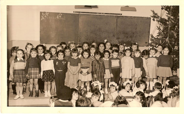 Naviguez en cliquant sur la photo. 1952 - Maternelle - Ecole risso fête de Noël à l'école Sur la photo Marie-Hélène PELBOIS (PASTRE) Signaler un abus