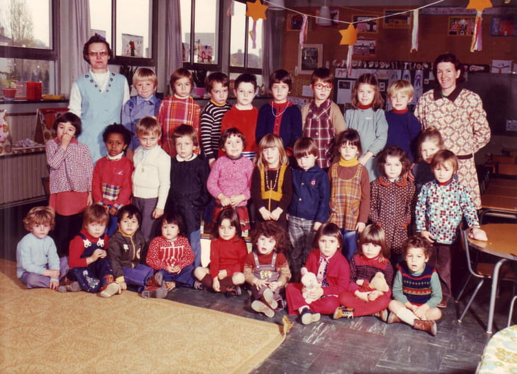 Naviguez en cliquant sur la photo. 1976 - Maternelle - Orme de la prevote Sur la photo Karine PASQUIOU Lionel GUEHO Pierre MARECHALLE Myriam VELASCO Signaler un abus