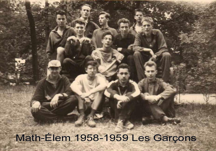 Naviguez en cliquant sur la photo. 1959 - Math-Èlem - Ecole normale garçons Les garçons de Math-Èlem Sur la photo Jean-Claude SOISSONS Signaler un abus
