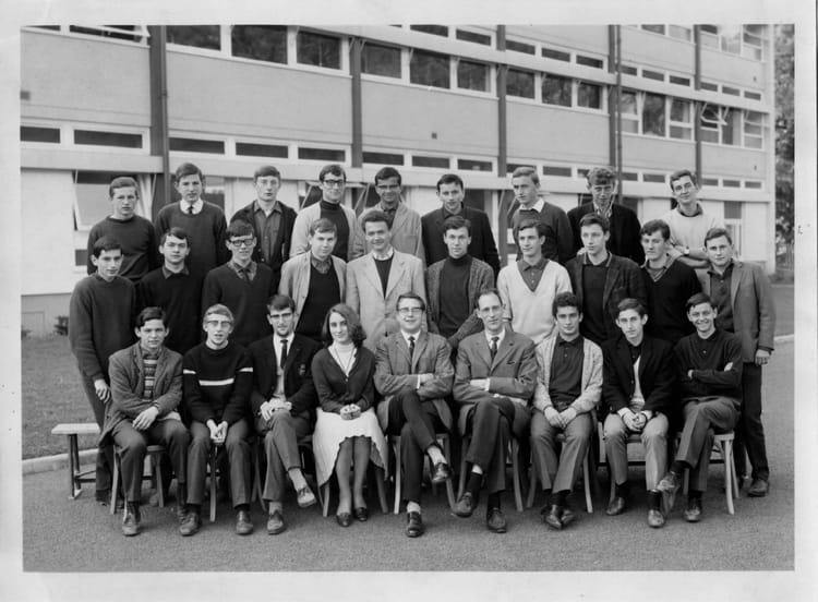 Anne-Marie LE GRAND (BIGOT) Au premier rang, à gauche de la jeune fille, Guy Felhman, fils de l'ancien directeur et d'une maman professeur de Français, récemment professeur d'Anglais dans le Lycée. A sa gauche, Monsieur Durand, Dudule, professeur de Mathématiques.