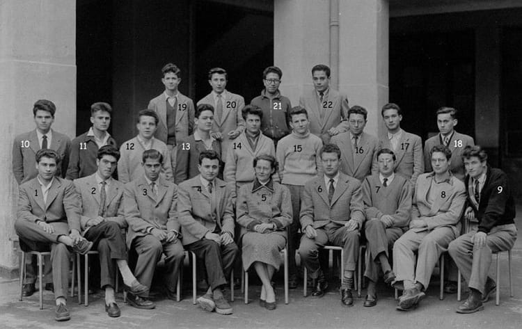 Naviguez en cliquant sur la photo. 1954 - Mathelem - Ardaillon 01= Maurice AKNINE 03= PEQUIGNOT 04= BENSOUSSAN 05= Mme DUPRAT prof de Philo 06= BOUAZIZ 07= DAYAN 10= Marcel LAHMANI 12= Guy CHOUKROUN 13= MAZZONI 15= CHOLET 18= Georges DE POLLA 22= Roger SALAMA Sur la photo Aucune personne identifiée. Signaler un abus