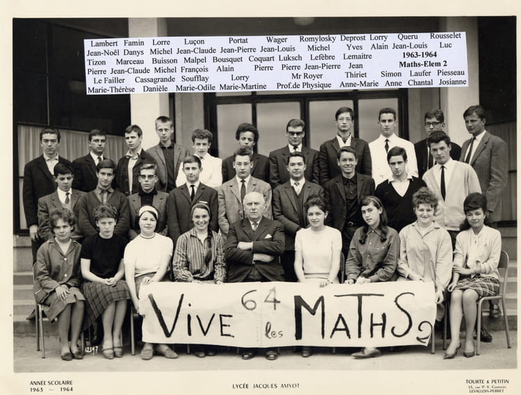 Naviguez en cliquant sur la photo. 1963 - Maths.Elem. 2 - Lycée j amyot Sur la photo Anne-Marie SALLE (THIRIET) Signaler un abus