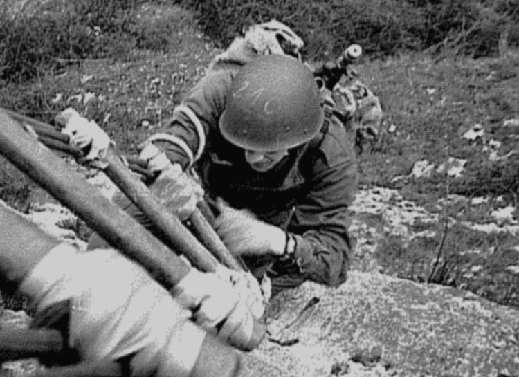 Naviguez en cliquant sur la photo. 1978 - Patrick - Centre d'entrainement de commandos PATRICK,qui grimpe l'echelle de corde. Sur la photo Aucune personne identifiée. Signaler un abus