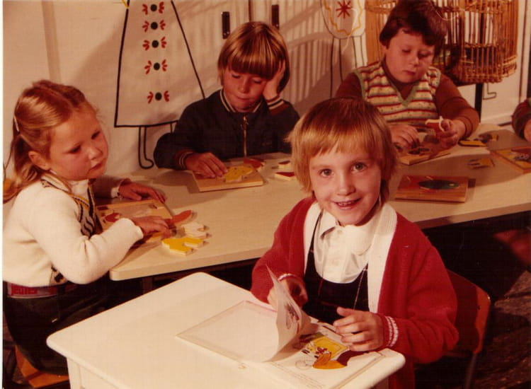 Naviguez en cliquant sur la photo. 1975 - PS - Ecole les iris Photo individuelle mais avec des copains qui apparaissent derrière Sur la photo Anne LETERRIER Céline HICK Signaler un abus