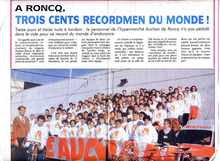 Naviguez en cliquant sur la photo. 1987 - Record du monde de tandem - Auchan Sur la photo Christelle KEIGNAERT Didier VANDEPLASSCHE Signaler un abus