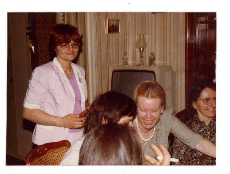 Marie-Joie DELENTE Nous étions chez Evelyne Mineau, je crois avec Sr Cécile (à droite) Bons souvenirs Marie-Joie