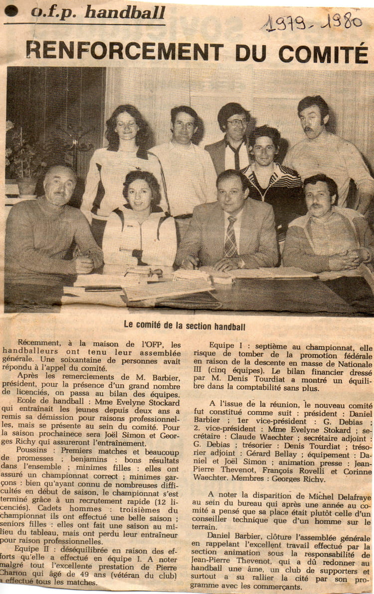 Président Daniel Barbier; 1er vice président G;Debias; 2iéme vIce président Evelyne Stocard; secrétaire Claude Waechter, trésorier Denis Tourdiat; Trésorier adjoint Gérard Bellais; équipement Daniel et Joel Simon; animation presse JP Thevenot, Françoise Rovelli