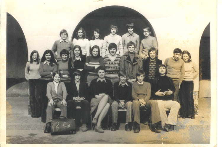 Naviguez en cliquant sur la photo. 1974 - Seconde C3 - Lycee e woillez photo déposée par Sylvie Fiévet épouse Trédez Sur la photo Aucune personne identifiée. Signaler un abus