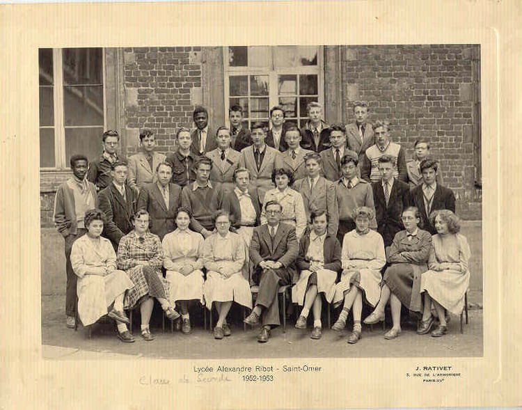 Naviguez en cliquant sur la photo. 1952 - Seconde - Lycée alexandre ribot Lycée Alexandre Ribot 62500 SAINT-OMER Sur la photo Alain PAYAN Christel CYNOBER (FAUCQUEZ) Jean-Marie VERBRUGGHE Liliane RAFESTIN (PAQUIN) Signaler un abus