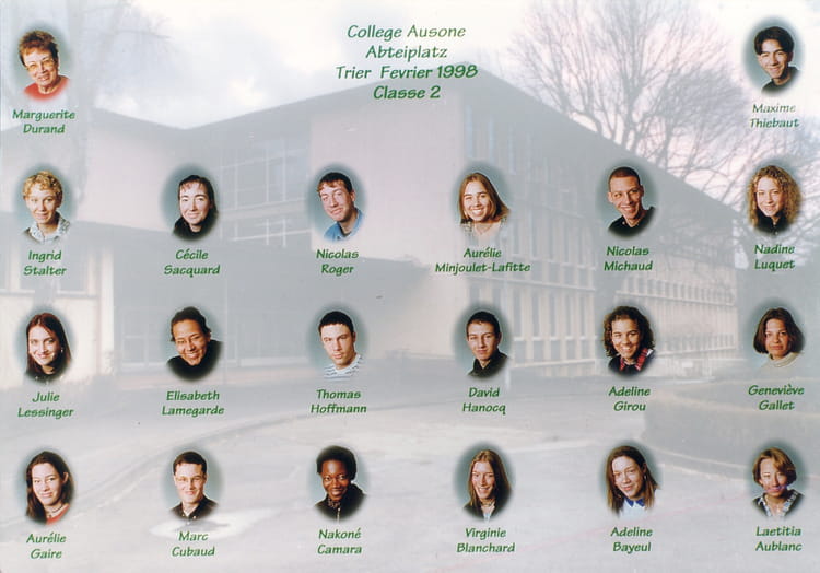 Naviguez en cliquant sur la photo. 1998 - Seconde - Lycée ausone Sur la photo Cécile SACQUARD Virginie BLANCHARD Signaler un abus