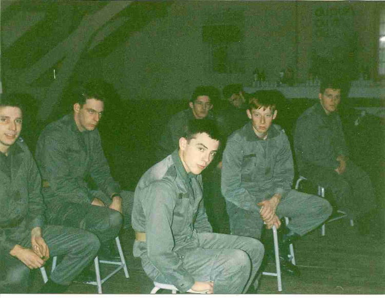 Naviguez en cliquant sur la photo. 1991 - Section clairon 1991 - 517 e regt train A la salle de répéte !!!! Sur la photo Aucune personne identifiée. Signaler un abus