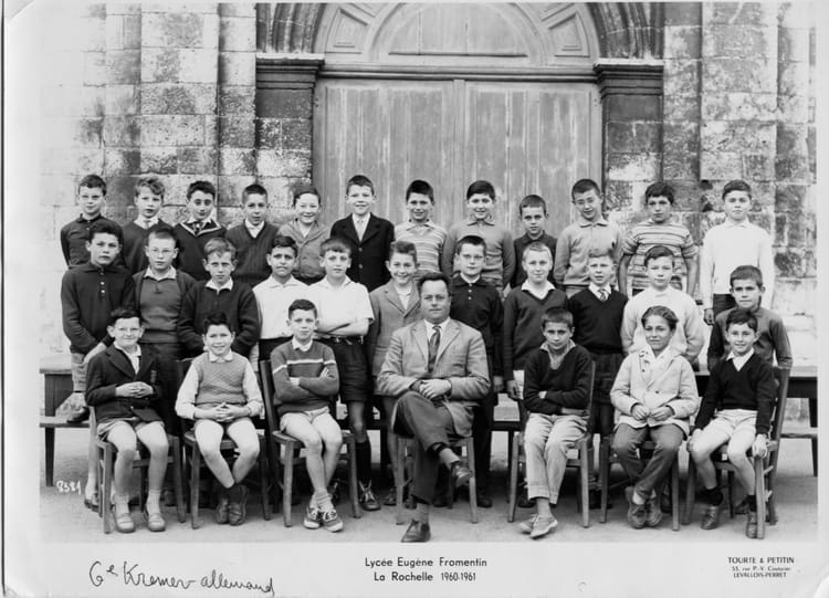 Naviguez en cliquant sur la photo. 1960 - Sixième classique - Eugene fromentin Il y a au moins un 'people' sur cette photo. Sur la photo François MOUROT Philippe MARTINAULT Signaler un abus