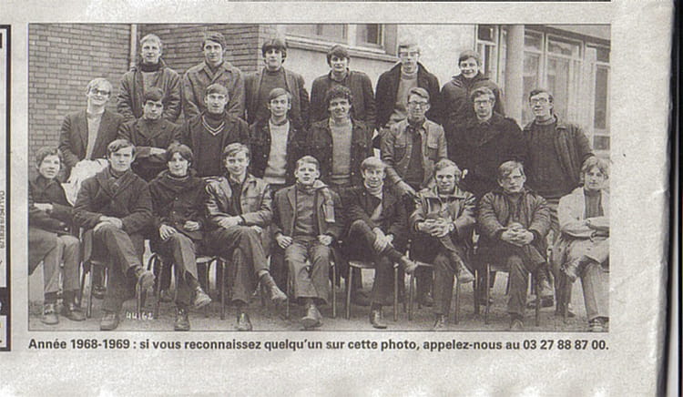 Naviguez en cliquant sur la photo. 1969 - Sp3m1 - Lycée technique charles bourseul des sacrés copins Sur la photo Gèrard BOUREZ Gérard BOUREZ Roland ROUSSEAU Salvatore RATTA Signaler un abus