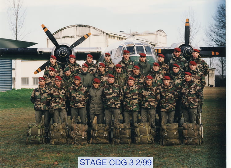 Naviguez en cliquant sur la photo. 1999 - Stage Chef de groupe de saut - Bomap Ce stage s'est déroulé à l'Ecole des Troupes Aéroportées de Pau en février 1999 Sur la photo Aucune personne identifiée. Signaler un abus