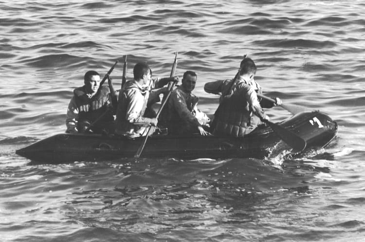 Naviguez en cliquant sur la photo. 1973 - Stage commando - 6eme rpima Escapade en mer lors du satge commande à Collioure, je suis dernier à gauche, j'étais de groupe choc. Sur la photo Aucune personne identifiée. Signaler un abus