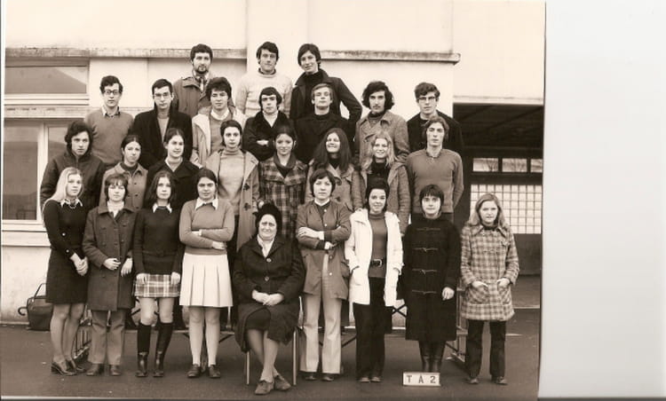 Andrée LE BRAS AROCA 1er rang en bas 7 ème (en manteau blanc) à partir de la gauche MARTINE CALVARIN habite à BREST.