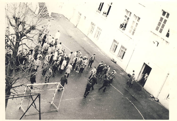 Gilbert GILBERT HISLER (HISLER)1969 Term E C'est la charge des forces de police fin d'année 68/69suite au mouvement protestataire assez important. Les bombes à eau sont lancées depuis les dortoirs par les élèves. La répression sera sévère : exclusions, refus de présentation aux examens, sorties et retours en famille supprimées, colles....