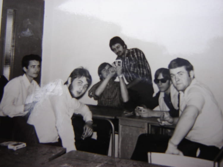 Partie de carte(poker ou 8 américain) en salle de permanence avec Avias, Christian Izoard et Robert (de St Andiol) Fouiller (de Courthézon) et notre international de rugby Bernard Ragonnet (du Pontet)