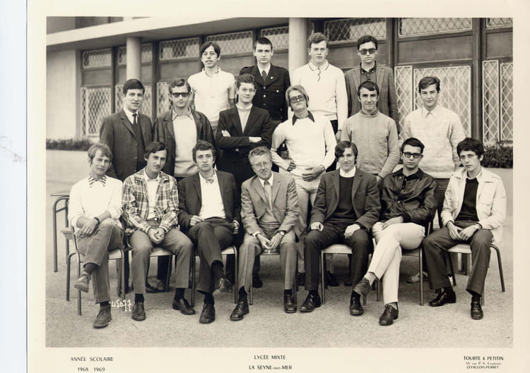 Naviguez en cliquant sur la photo. 1969 - Terminale E - Lycée beaussier Photo prise avec Monsieur Imbert Professeur de Dessin industriel Sur la photo Bruno ROCHEFORT Christian LEGER Bernard ZORINE Bruno ROCHEFORT Signaler un abus