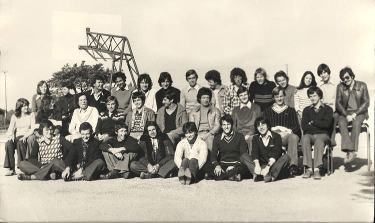 deuxieme rang position 1 gauche Marie-Veronique Dusmenildot, en pos.3 Jean-Jacques Baudino(qui fait le pitre), Position 5 X chorda, pos.6 Gerard Grima, ensuite le prof de Math, pos. 9 Yves Margutti.