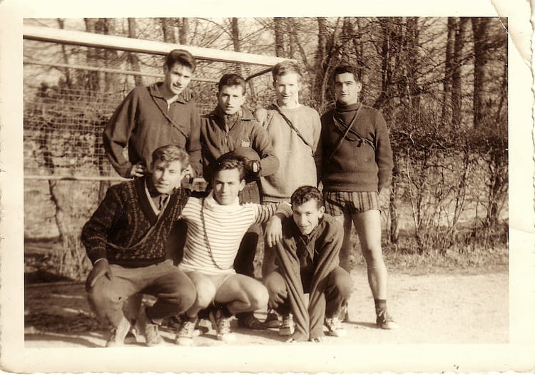 Naviguez en cliquant sur la photo. 1962 - TMS - Lycee technique d'etat L 'équipe de sportifs à la Colombière stade d'epinal Sur la photo Gerard DIDIERLAURENT Guy CHABRAT Guy Remy YAMENENDJI Signaler un abus