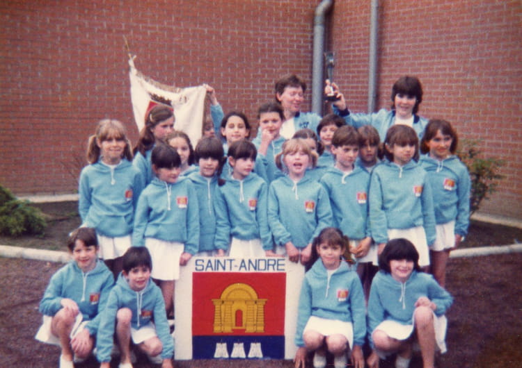Naviguez en cliquant sur la photo. 1982 - USSA - Ussa Défilé dans les rue de st andré je suis la petite blonde avec des couette avec la bouche ouverte et ma cousine doriane carnot et juste en dessous de moi Sur la photo Carine FALEMPIN Stéphanie CARNOT Signaler un abus